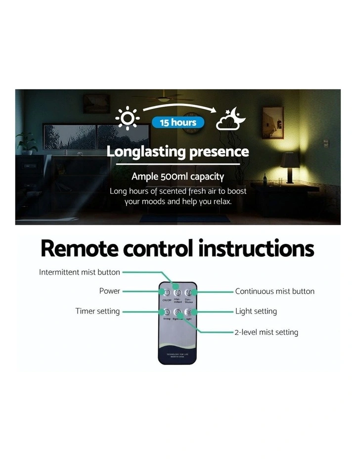 You can set the diffuser to work continuously for up to 15 hours by selecting its three timer functions. It operates whisper-quiet with a waterless auto-off to protect its operations. Plus, it also has two mist adjustment modes to provide your desired misting. Not least, you can also adjust the level of brightness or select your desired night light colour with its 7-colour LED light to give you soothing hues all through the day or night.