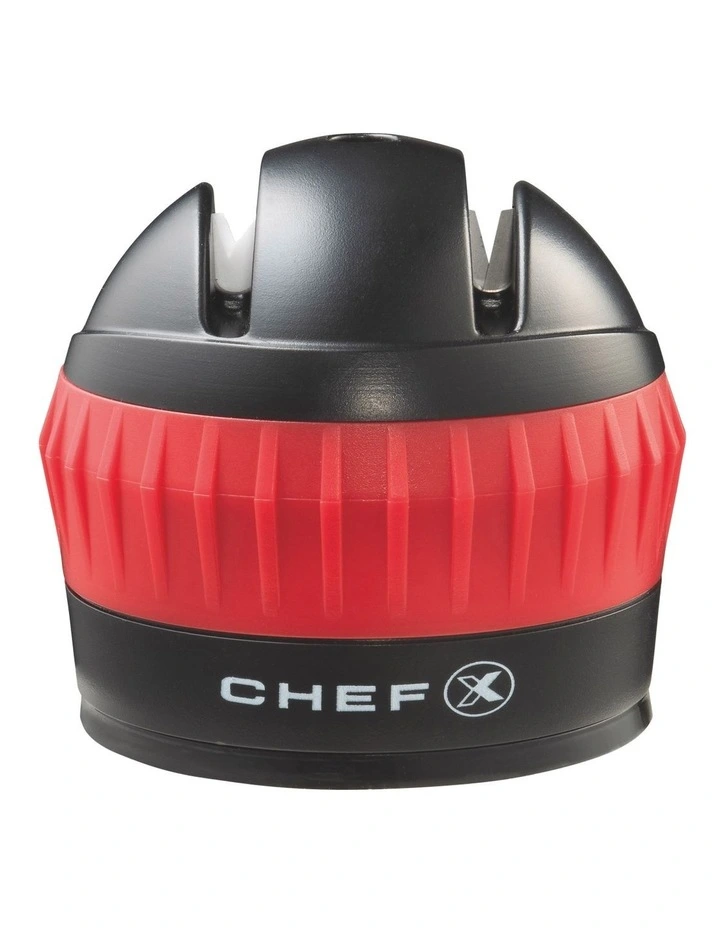 Easy and safe to use. The ChefX Dome Grip Sharpener suctions onto any bench top or cutting surface. To maintain a fine cutting edge on any non serrated knife, simply guide the knife blade through the 2 sides of the sharpener to hone and sharpen.