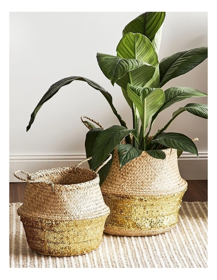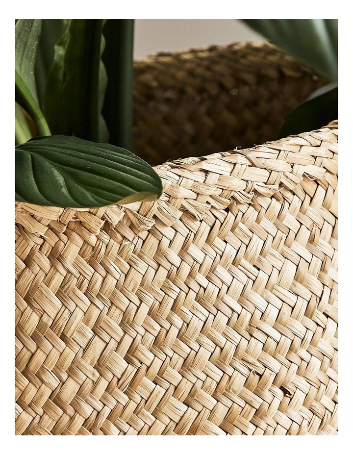 Made in Vietnam from seagrass, this flat-bottomed basket will stand upright and open. Its flexible structure allows you to compact it down when storing. It’s perfect for holding newspapers, pot plants, small umbrellas, and other small household items.Â
