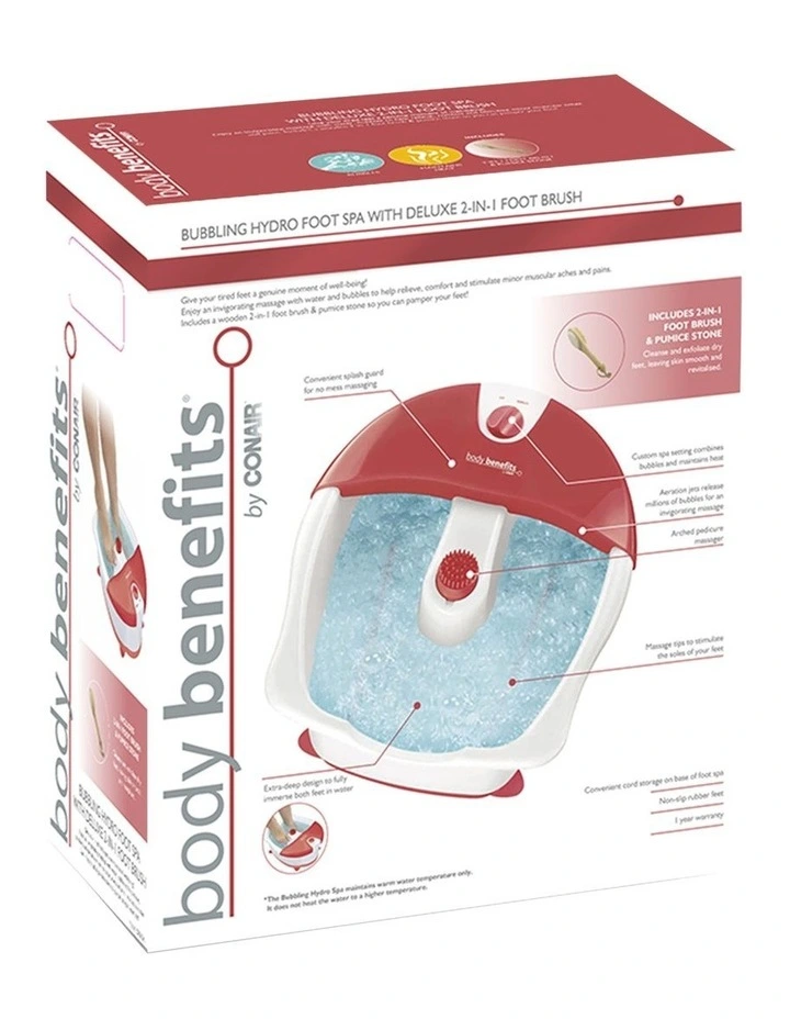 Enjoy an invigorating foot massage with the Bubbling Hydro Foot Spa With Deluxe 2-in-1 Foot Brush. Includes a wooden 2-in-1 foot brush & pumice stone so you can pamper your feet!