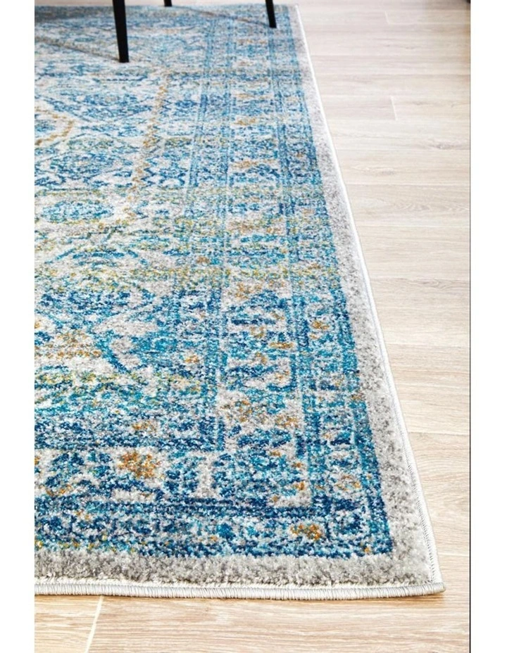 Provide that unique style in your interiors with the sumptuous and head turning design of this one of a kind Evoke rug range. The Evoke Duality Silver rug features a 10mm pile height of floral center mixed with interlocking patterns beaming in a Bohemian feel expertly blushed with tangerine and azure combination of tint which coincides to any room setting. It is expertly power loomed in Turkey giving it an outstanding finish, pleasing to the eyes and the underfoot.