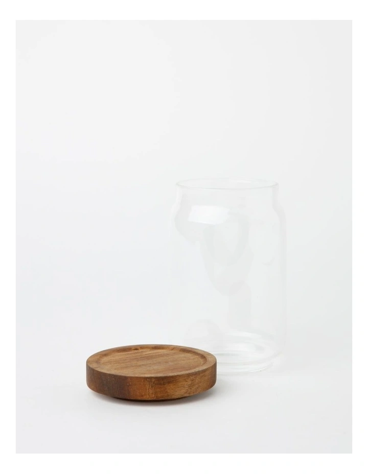 The Cooks Collective Glass Storage Jar with Acacia Lid 700ml in Clear