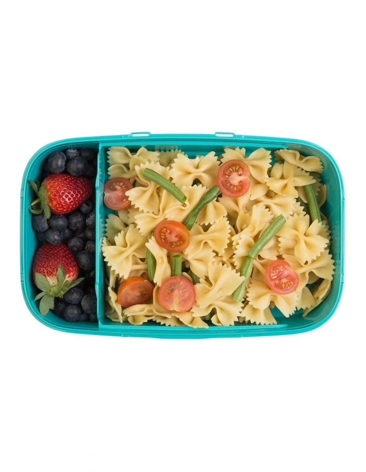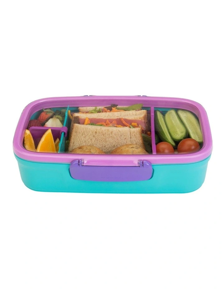 Take lunch on-the-go with the Decor Go Bento Lunchbox. Designed for superior function and style the set includes an extra large base big enough to hold a sandwich, banana, snacks, crackers, juice box and more. Use the two snack compartments with soft peel lid to keep wet foods such as yoghurt, sliced fruit and dip separate so theres no more soggy lunches. With an airtight seal to keep lunch fresh and secure clips the Decor Go XL Lunchbox is the ultimate lunchbox.