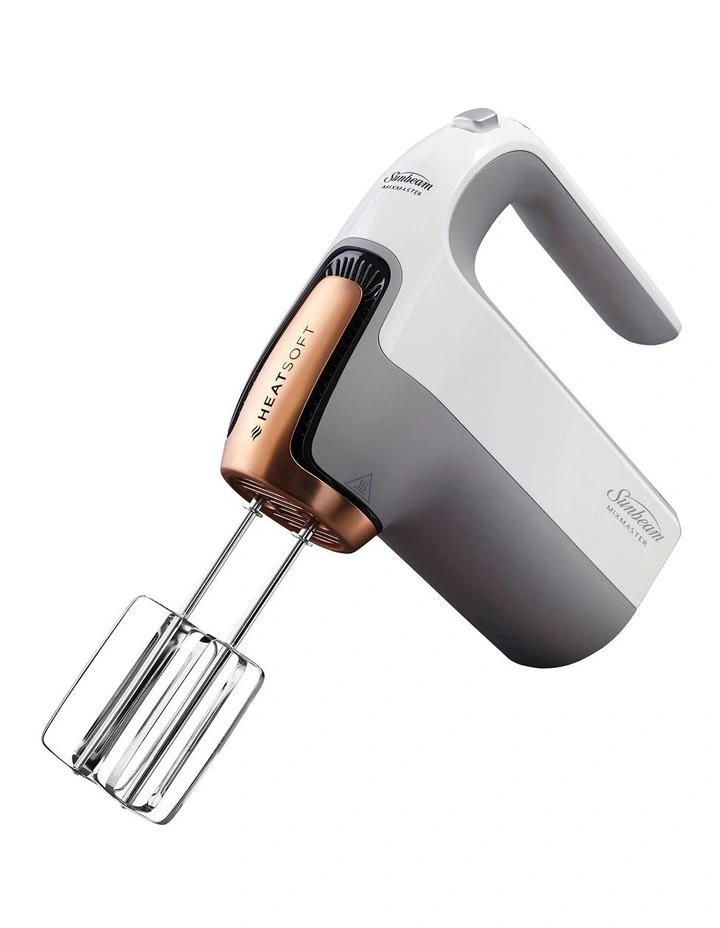 The patented HeatSoft technology in the Mixmaster hand mixer softens cold ingredients bringing mixtures to ideal baking consistency*. It softens butter 12x faster** taking cold butter from fridge temperature to ideal baking temperature in only 2:30 minutes. For faster, fluffier and creamier cakes and cookies!