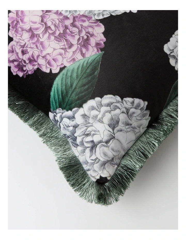 Heritage Hazel Hydrangea Print Cushion 50x50cm in Black