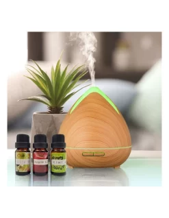 Cool Mist Ultrasonic Diffuser With 3 Pack Essential Oils Light Wood