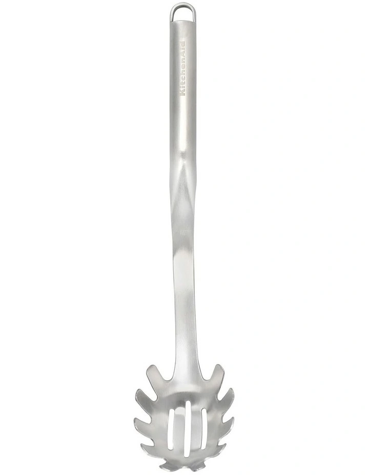 The perfect kitchen utensil for cooking pasta to serving it at the table. The KitchenAid Premium Pasta Fork is a large, long-handled pasta spoon made from stainless steel. This tool is not only highly functional and easy to use but also easy to clean, and it is dishwasher safe.