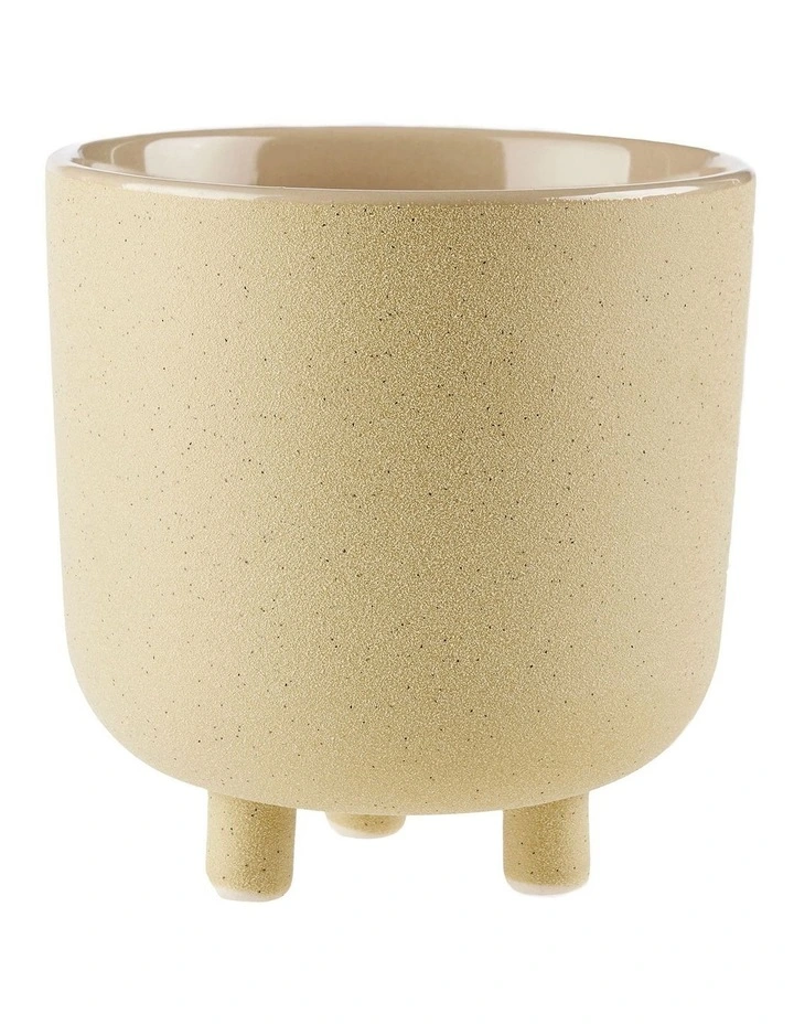 A whimsical planter pot in a soft, earthy hay, Kai features a textured exterior, glossy interior and quirky legs for a stylish finish.Â