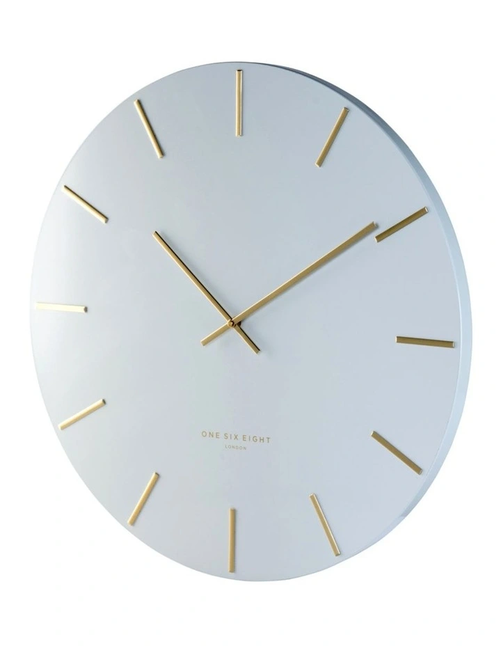 The Luca wall clock showcases neat simplicity and an on-trend minimalist vibe, alongside distinctive Art Deco influences. Constructed from pressed metal and enhanced with luxe metallic details, it has a contemporary elegance that will upgrade any interior in a chic way. It is sophisticated with a subtle glamour – a versatile piece and a modern classic. Although created with current interior trends in mind, this design will never go out of style. Available in 40cm and 60cm sizes Available in Charcoal and White Open dial with embossed markers High-quality silent quartz movement Industry-leading 5-year manufacturer’s warranty Designed in the UK by One Six Eight London