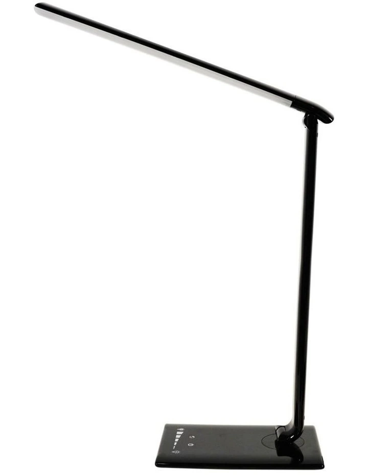 LUKE LED desk lamp is packed with features, including a USB port for charging devices, and soft-touch controls on the base. Use the dimming scale to adjust the brightness or simply touch the buttons marked for brightest light or the lowest light setting. LUKE also features colour change technology, which can be left at your preferred setting or changed between four colour temperatures a warm 2700K through neutral whites, to the bright white 6500K. A strip of bright LED’s run the full length of the top arm piece, providing a good spread of 500lumens of light, with a high colour rendition index (>Ra80). Power-in and the USB socket are at the rear of the base (200 x 125 mm). The arm can be pivoted left to right on the base, and fully up-down. It can also be adjusted up-down at the bend.