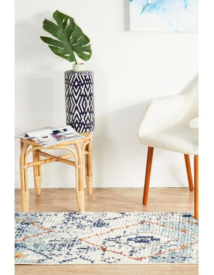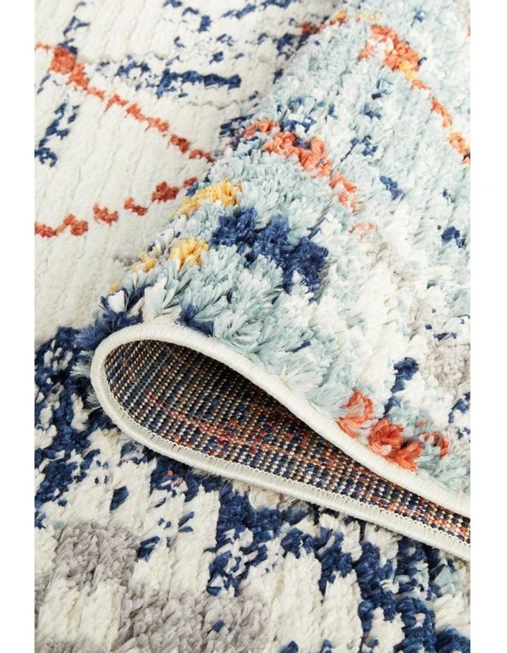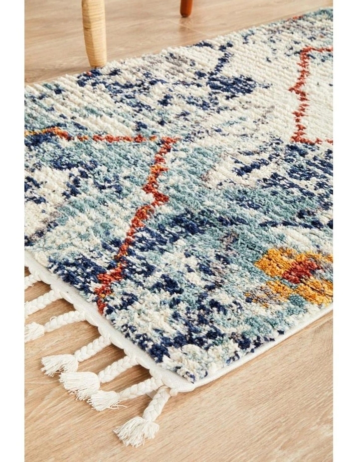 Moroccan handicrafts truly is well represented with this unique piece from the Marrakesh collection. Sparkle and bring out the best in every household or room with this one of a kind rug, duly crafted and blushed with a blue mainstream context and sporadic geometric patterns. These rugs are hand weaved and power loomed to perfection giving it an outstanding finish pleasing to the eyes and the underfoot.