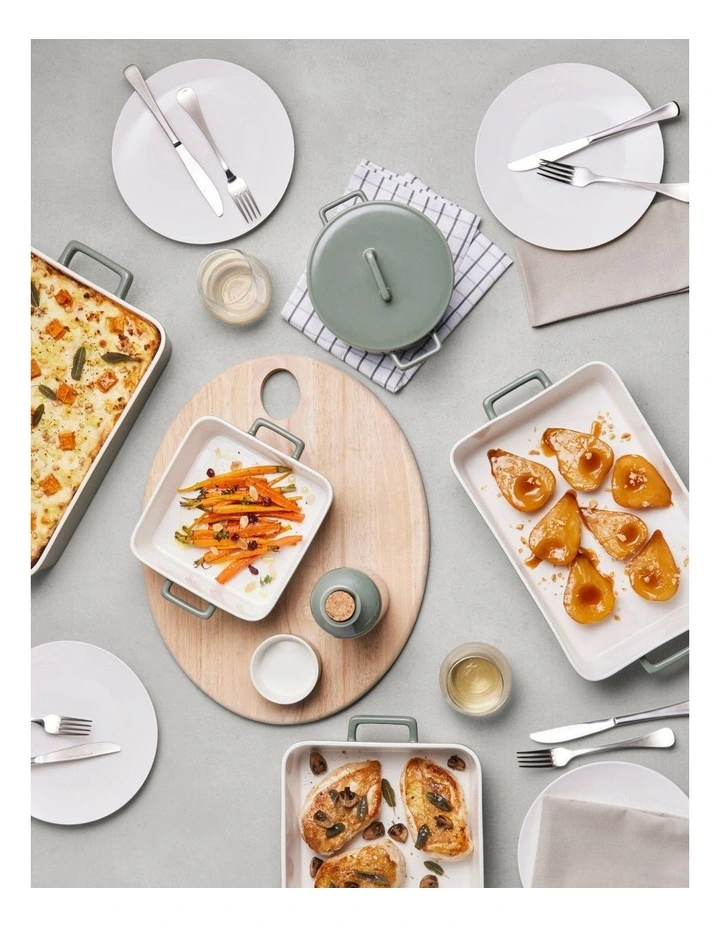 This Epicurious 19×7.5cm square baker turns every meal into a masterpiece – straight from the oven to the table. With a sleek contemporary design and a soft sage finish, it gives beautiful presentation to roasted vegetables, desserts and your favourite winter bakes. Perfect for anything from casual weekday meals to dinner parties with friends, it has a crisp elegance that will complement any setting. Combine it with the rest of the Epicurious collection for a stylishly coordinated kitchen.