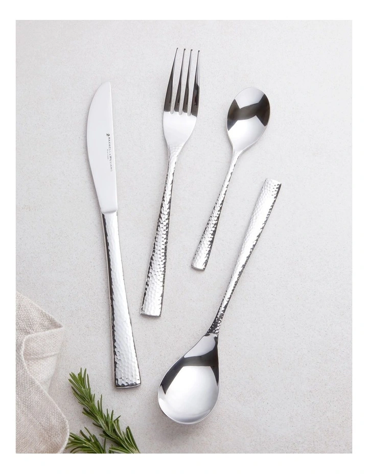 This 16-piece cutlery set from Maxwell & Williams is a welcome addition to any table setting needing a revamp. The Wayland collection features a hammered metal design, giving the handles a textured finish.