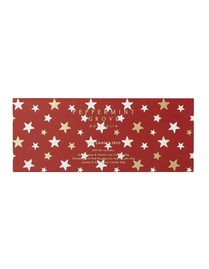 The perfect gift this Christmas! This decadent Mini Candle Trio includes three of our Limited Edition Christmas fragrances beautifully presented in a festive gift box. Our 60g Soy Candles feature Limited Edition polished gold lids.