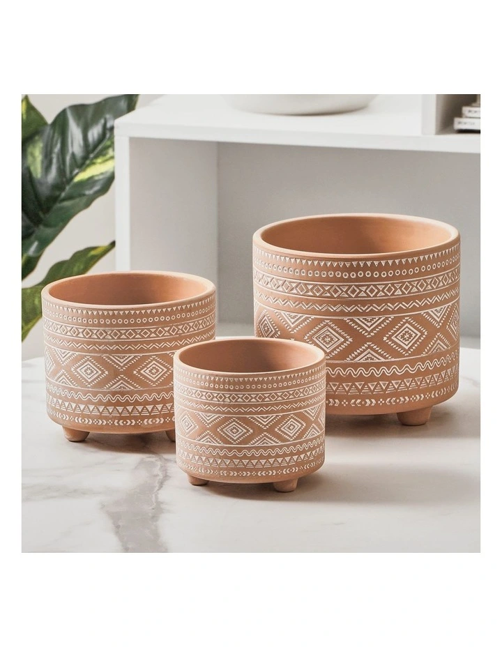 - Set includes three cylindrical pots in varying sizes perfect for placing your favourite.