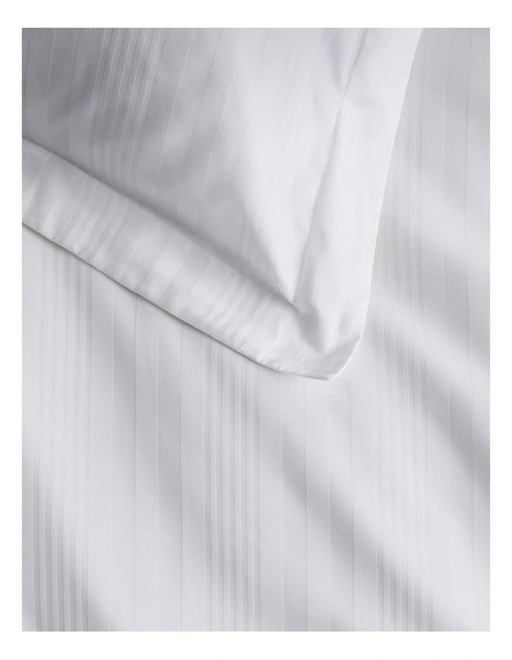 Sheridan Newmark features a sateen stripe in an even pattern of alternating widths, running the length of the bed in this elegant dobby weave sheet. Crafted in a luxurious 400 thread count cotton sateen, this tailored classic design is finished with a 5cm self-stitched border. Pair with its matching sheet set for a complete look. The Newmark quilt cover set includes two matching standard pillowcases.