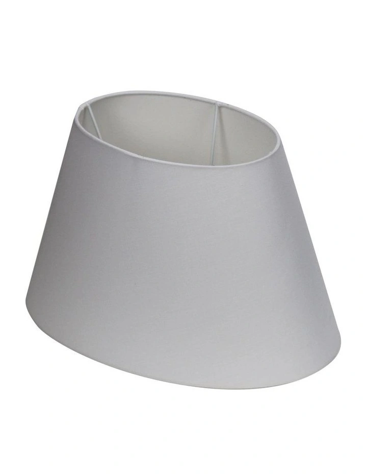 An oval shade is ideal for bedside or hallway, as it allows the lamp to sit closer to the wall. This oval tapered hardback shade is 31cm wide and 21cm deep. Suitable for a table lamp base approximately 30cm high. Has an E27 (43mm) shade ring.