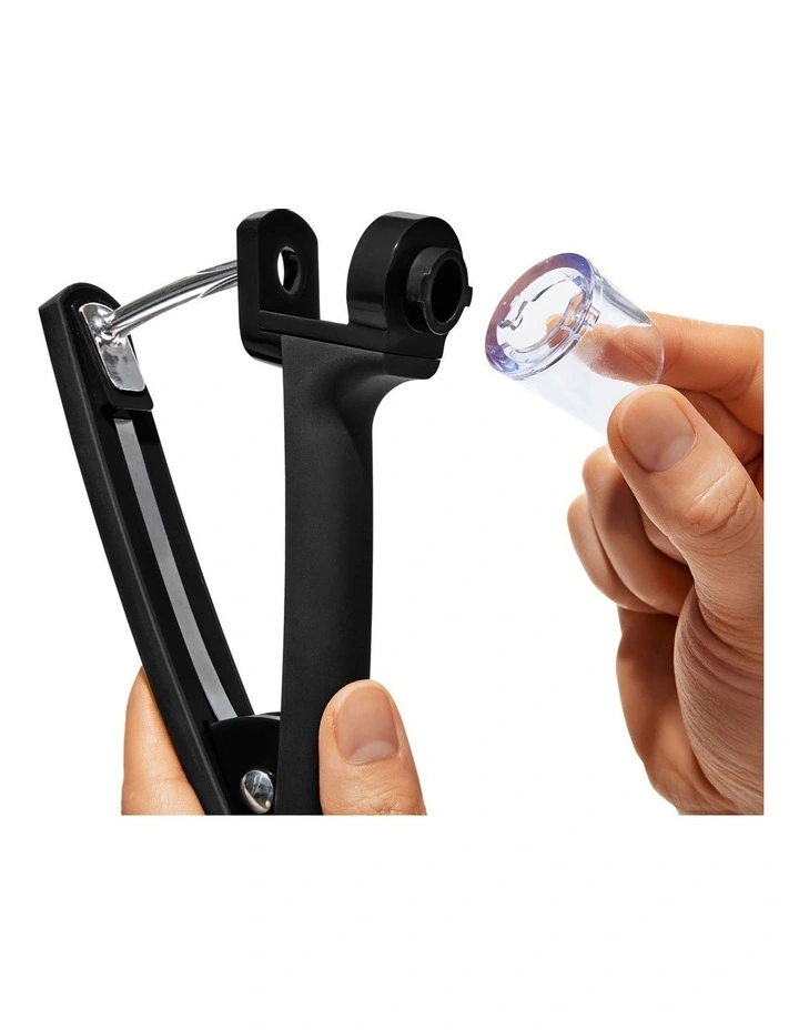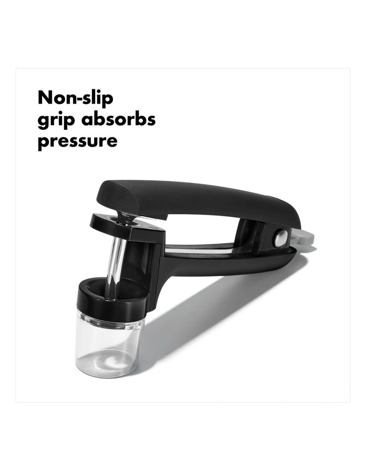 The OXO Good Grips Cherry & Olive Pitter’s removable splatter shield keeps juices contained and directed downward. Large holder accommodates Bing cherries, and a recessed cup holds smaller varieties of cherries and olives. Comfortable, non-slip handle absorbs pressure while you squeeze.