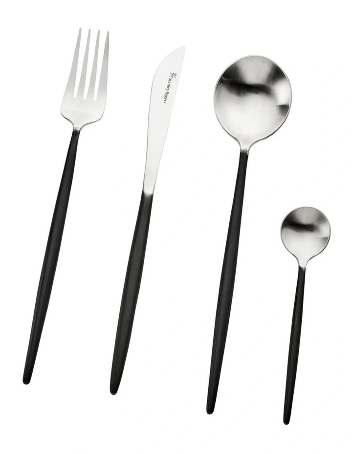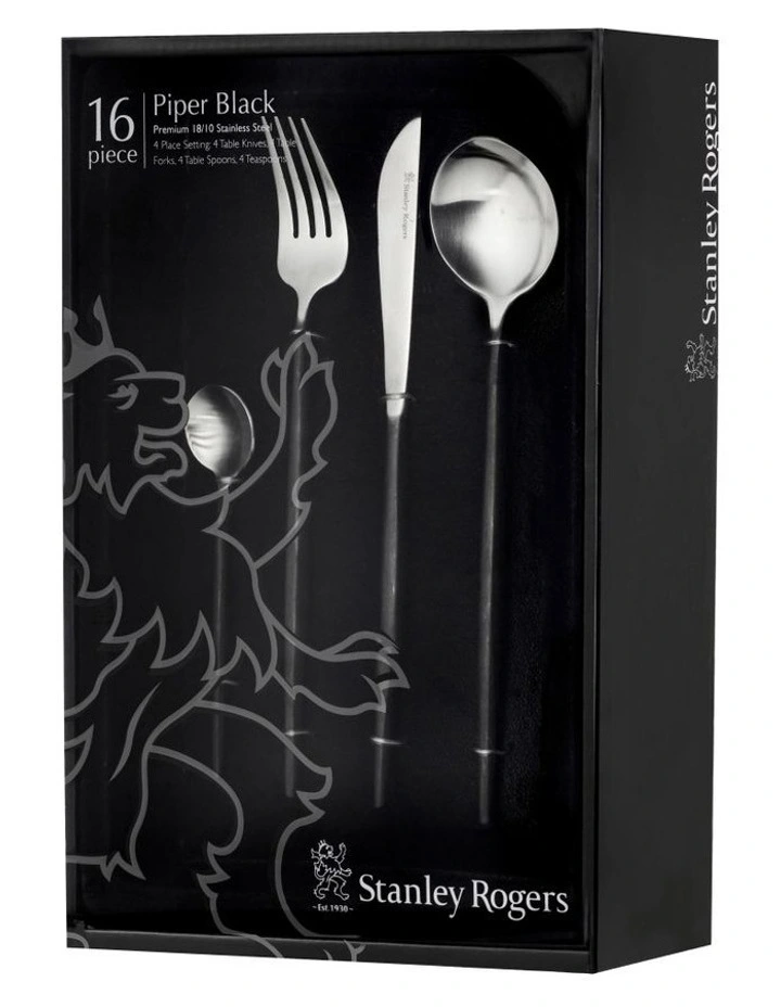Add a touch of designer style to your table with Piper. The elegantly slim handles with rustic black finish are sure to impress. Crafted from premium 18/10 stainless steel with satin-brushed heads to last a lifetime.
