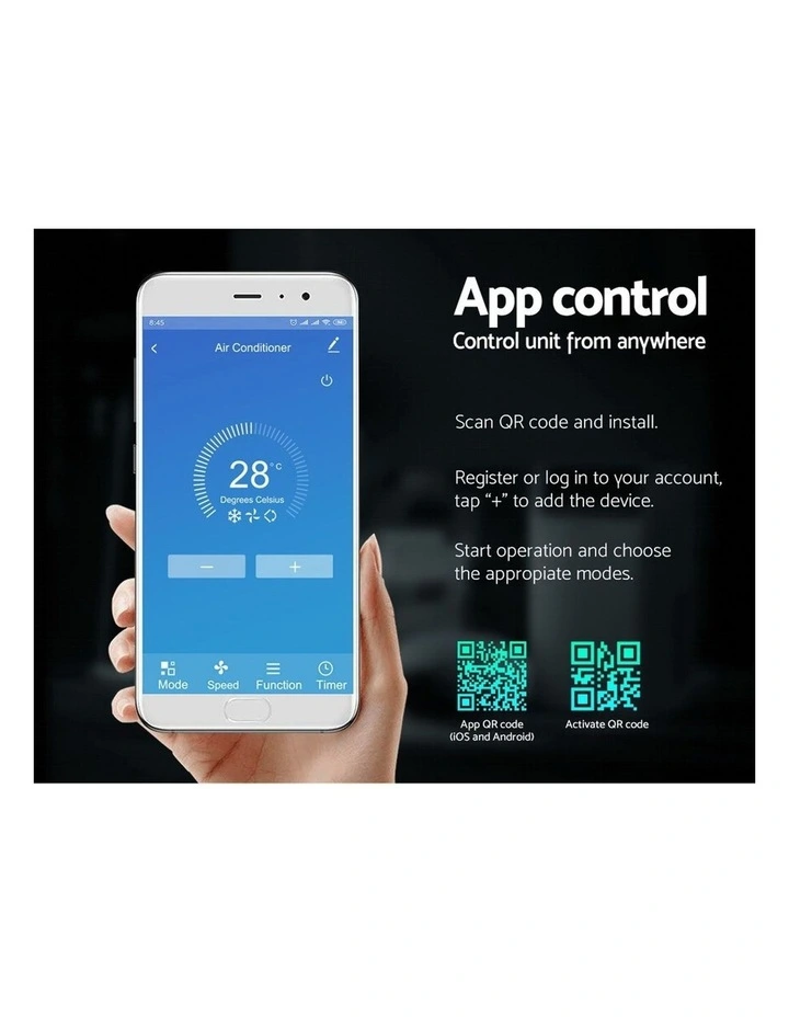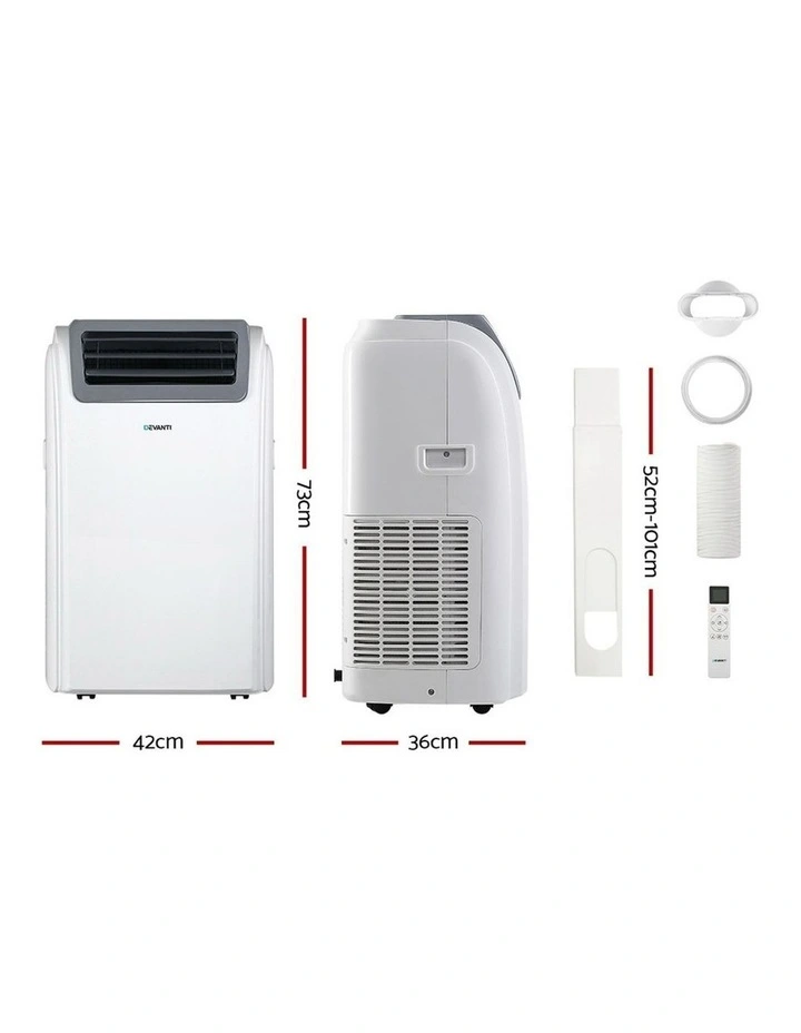 Hot days are not too far away. So why not pick up our Devanti Portable Air Conditioner to help you stay cool comfortably and economically throughout the season. The air conditioner is three appliances rolled into one: air conditioner, 4-speed fan and dehumidifier. There is also an additional automatic water vaporisation system so that you do not need to empty the water tank. The air conditioner rapidly delivers super cool breezes throughout rooms sized 20m? to 30m?. In whichever mode you are using, you can always count on ample cool air at your preferred temperature settings. The LED display allows for a clear glance of all your settings. A handy remote control lets you control the settings from the comfort of your lounge, while the Wi-Fi connectivity truly lets you take control from anywhere. The air conditioner can also be set to work for a pre-set number of hours with its 24-hour timer. Built-in handles and castor wheels make the air conditioner very portable so that you can keep cool wherever you are. An included adjustable window exhaust kit enables easy installation of the exhaust hose for hot air to be extracted easily. Do not let the heat and wet get you down this summer. Rise up to a cool and refreshing ambience with our portable air conditioner.