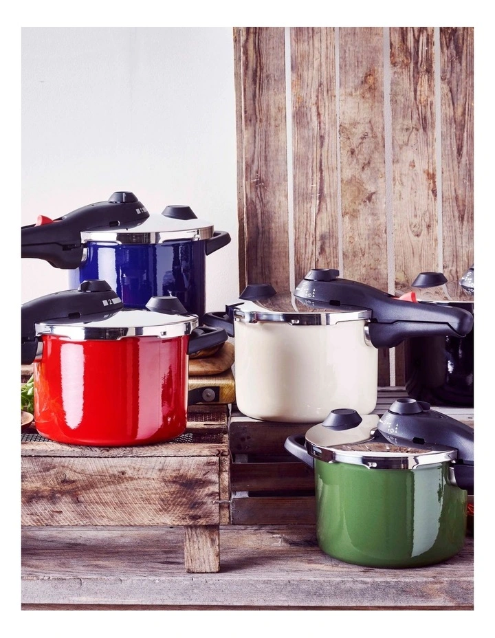 The BK enamel pressure cooker is made from enamelled steel, , a non-toxic, non-porous and scratch resistant material for fast heat conduction and maximum heat retention. The cooker allows you to save time and energy by enabling you to prepare healthy and tasty family meals in one pan.