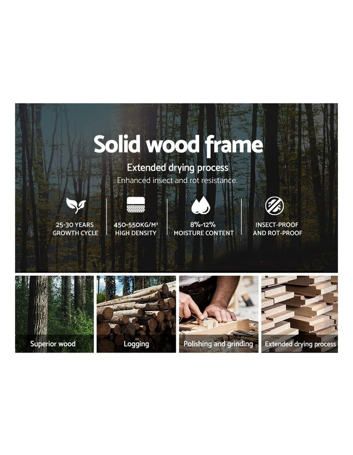 Constructed with a sturdy steel frame thats reinforced with metal bars and heavy-duty connectors, the Mila Bed Frame is also padded with high density foam and upholstered in premium faux linen fabric for a soft and comfortable touch. The Bed Frame features a wooden arched slat base that helps to distribute weight evenly across the frame and a centre support strut to provide added stability to the overall structure.