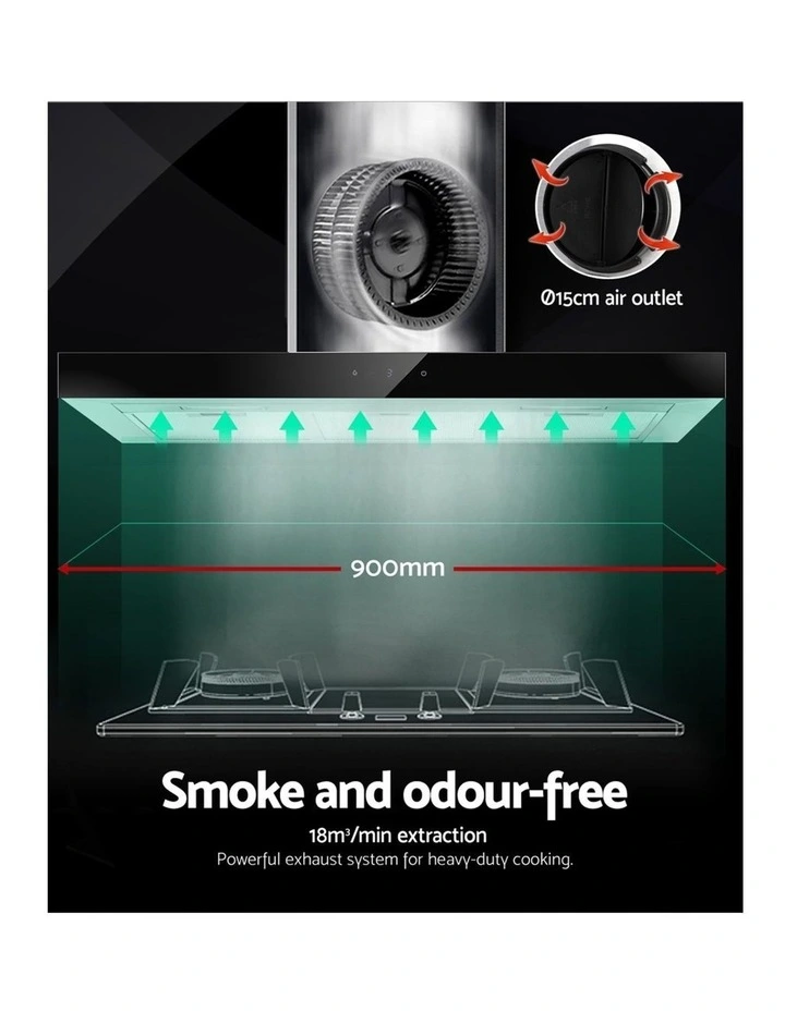 We know how uncomfortable it is to work in a kitchen where there is poor ventilation and odours all around. Let our Devanti stainless steel range hood help reduce unwanted odours and fumes whilst pumping fresh air. It is seamlessly made to fit into your dream kitchen and efficiently remove stifling odours and steam. The range hood features a powerful exhaust system for heavy-duty cooking, an adjustable chimney for the perfect fit, quiet operation, two bright lamps for ample illumination, and 3-speed touch controls to suit your circumstances. Plus, the 5-layer dishwasher-safe aluminium filter effectively filters out oil and fumes and can be removed for cleaning. It even consumes less power and offers safe and reliable operation. Not least, the tempered glass is easy to clean and maintain. A cleaner and healthier kitchen is just a click away. Purchase now.
