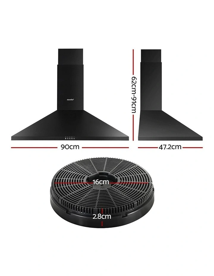 Thick smoke and steam from your cooking. Stifling odours all around. And your range hood is not doing its work to clear the mess. Not anymore with Comfee 900mm Range Hood. Featuring a powerful extraction rate of 550m/hr from a high performance 110W rated motor, our stainless-steel range hood will clear the air of smoke, steam, odours and vapours in no time at all. The non-stick and removable 5-layer aluminium grease filter ensures all grease is efficiently captured. Completing the job is a 3-speed fan that can be easily selected with the rocker button switches. Clear and bright LED lights also provide vivid illumination for your cooking area, so you can see everything youre cooking.