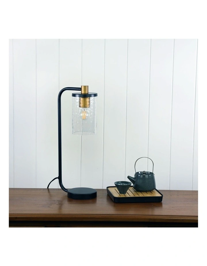 The Raymont features black metalware with aged brass highlights. The obscure glass, with water weave pattern, gives the Raymont that something special. Ideally paired with an LED filament bulb. An excellent bedside lamp.