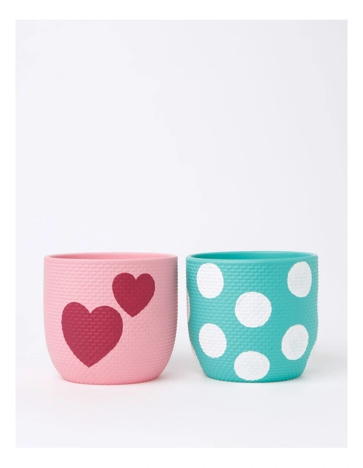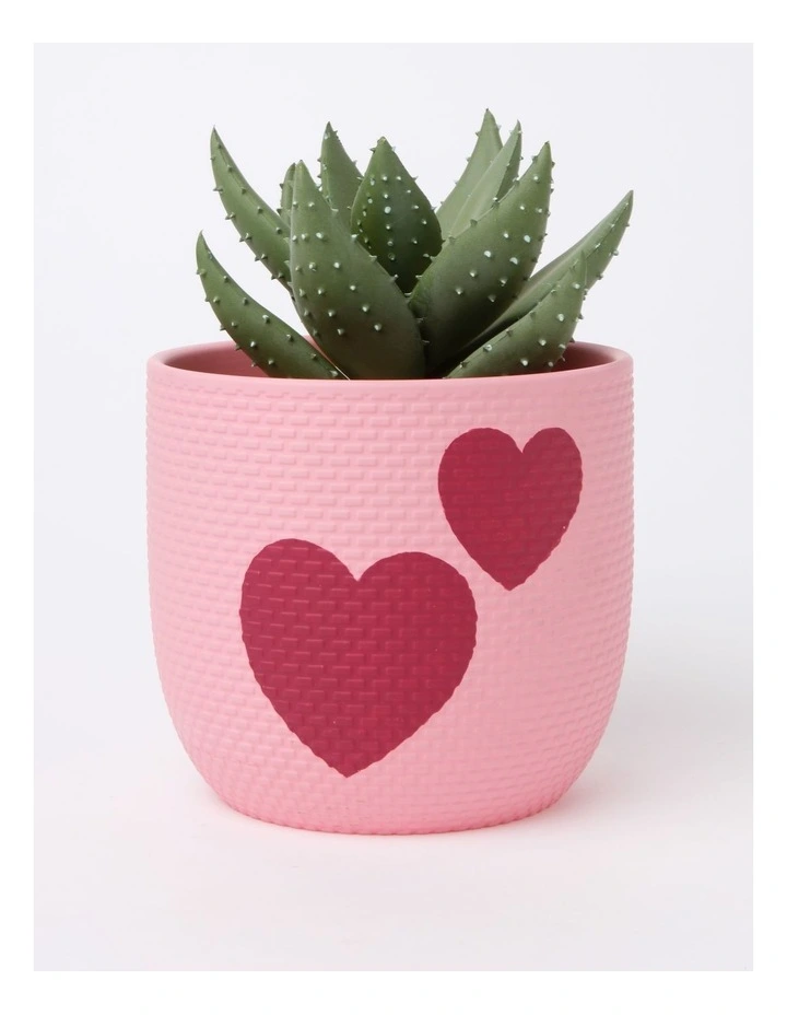 Vue Rubberised Planter Pot Pink Heart 15.5x18cm