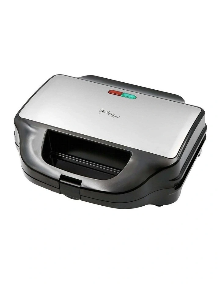This sandwich press fits two sandwiches per use for the sandwich plate set, fits two waffles per use for the waffle plate set and includes a long grilling plate cooking surface for the grilling plate set. The deep large cooking plates make extra room for more fillings for a full satisfying meal. The sandwich slice design seals and cuts the sandwich diagonally for the sandwich plate set so no extra work is required.