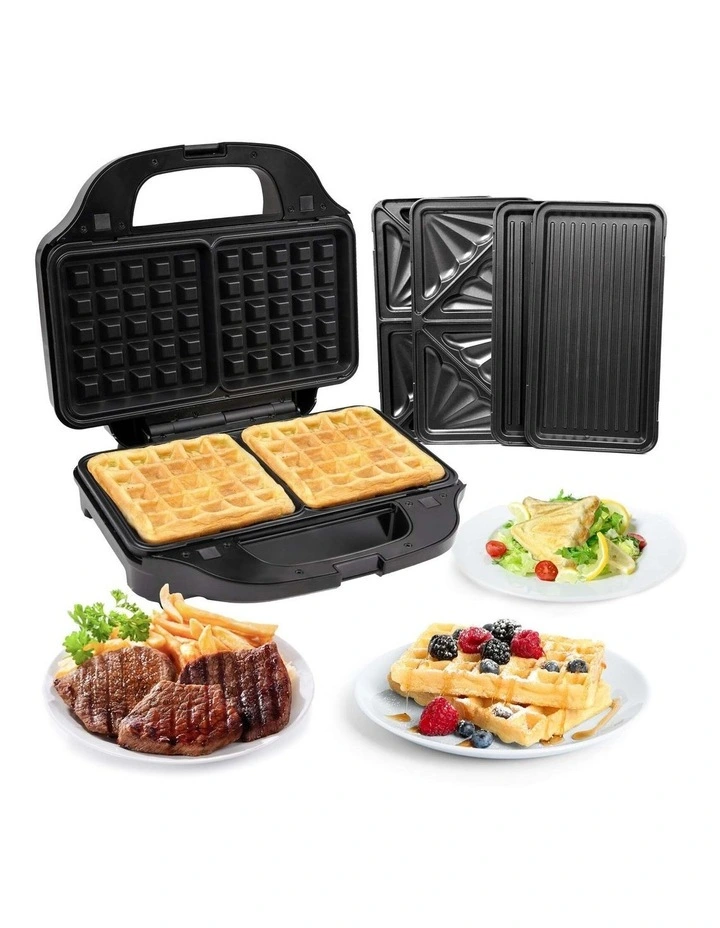 Enjoy steamy hot toasties, fresh blueberry waffles, juicy grilled steaks and much more with this Sandwich Press with 3 Interchangeable Plates.