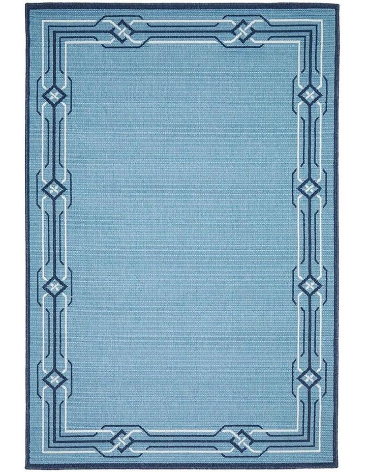 Adorned with a navy and white border, this simple but elegant design offers effortless style. This easy-care collection is designed to be used outdoors as well as indoors, these rugs are water resistant and will add an element of fun to any space. This short, easy to clean pile made from durable polypropylene and is power loomed.
