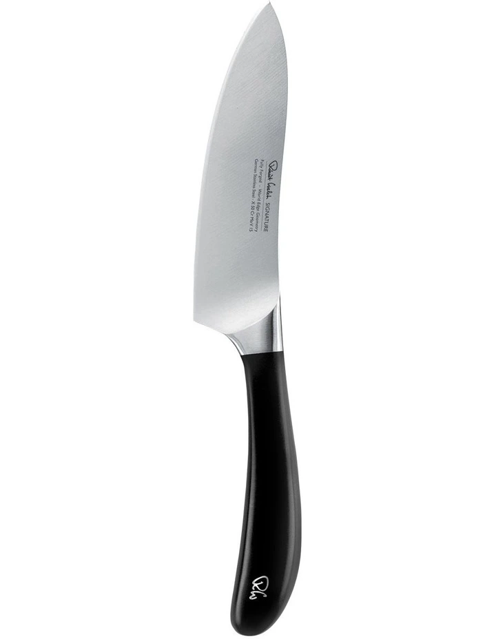 Robert Welch’s SIGNATURE 14cm cook’s knife is an all-purpose knife with a curved blade that enables a rocking action for chopping and dicing. Designed in consultation with professional chefs, this award winning kitchen knife features a fully forged German DIN 1.4116 stainless steel blade with a full tang for extra strength.Â