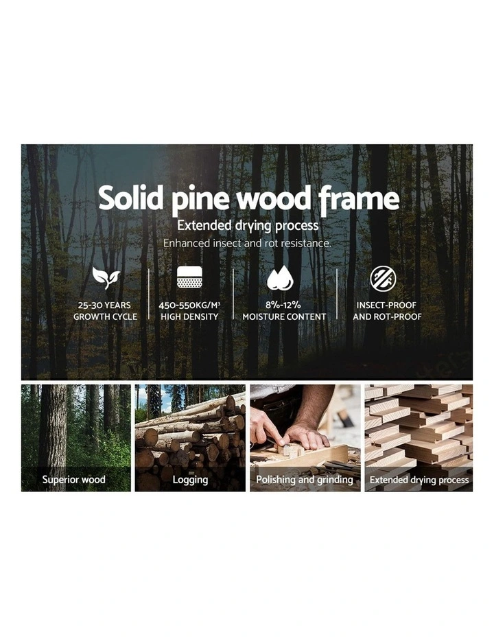 Made of solid pine wood, the LEXI Bed Frame is an all-round functional design that is compatible with most Australian sized mattresses and ideal for use by both young and old alike.
