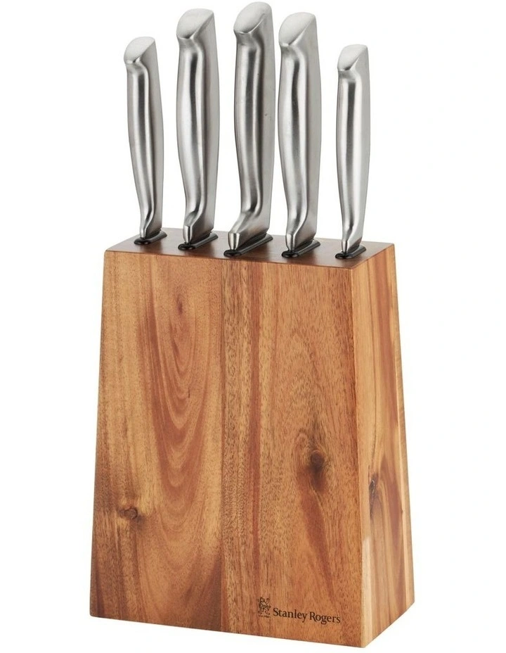 Beautifully constructed from acacia wood, this Tapered Vertical Block is designed to store knives safely whilst keeping them in excellent condition. The block houses the five essential knives to cover all cutting tasks in the kitchen.