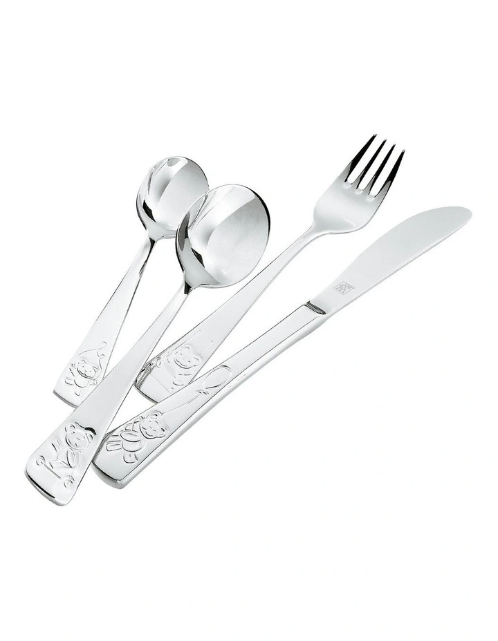 Set contains 1 each knife, fork, dessert spoon and teaspoon